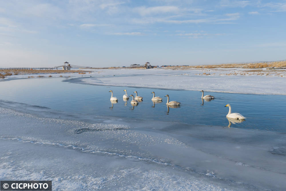 ↑2025年12月17日在新疆巴里坤县高家湖湿地景区拍摄的天鹅。CICPHOTO/钟卫亮 摄