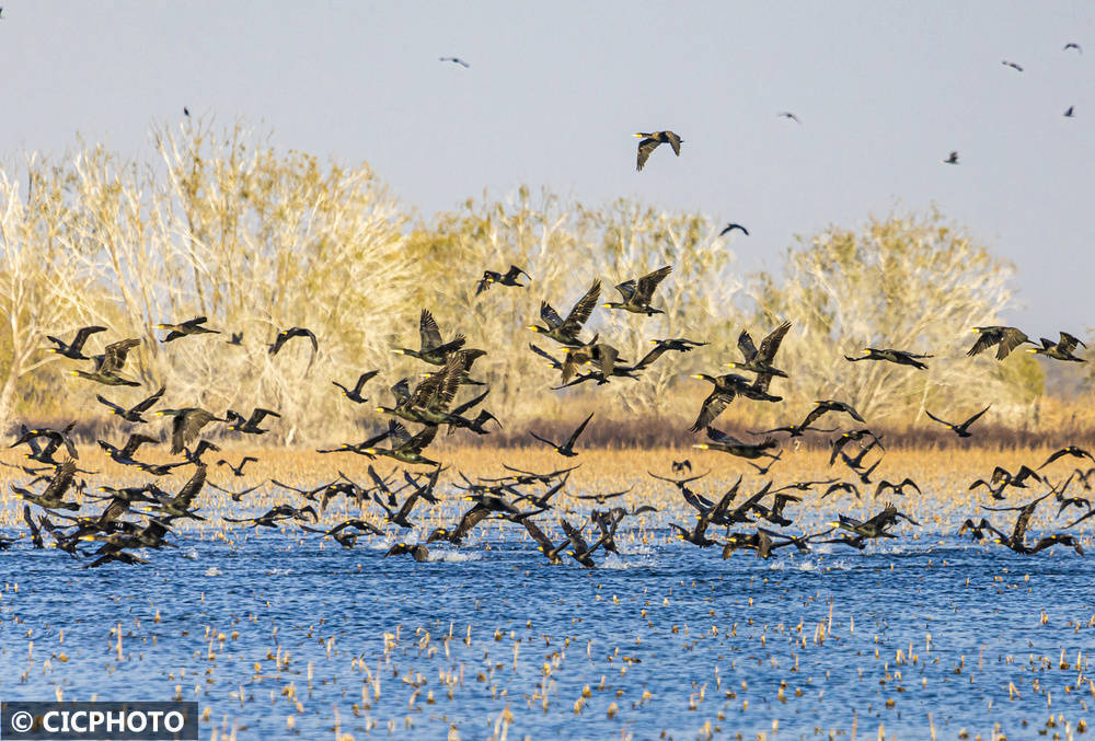 ↑2025年11月29日,鸬鹚在江苏省宿迁市泗洪县洪泽湖湿地临淮段栖息。(无东说念主机相片)CICPHOTO/张连华 摄