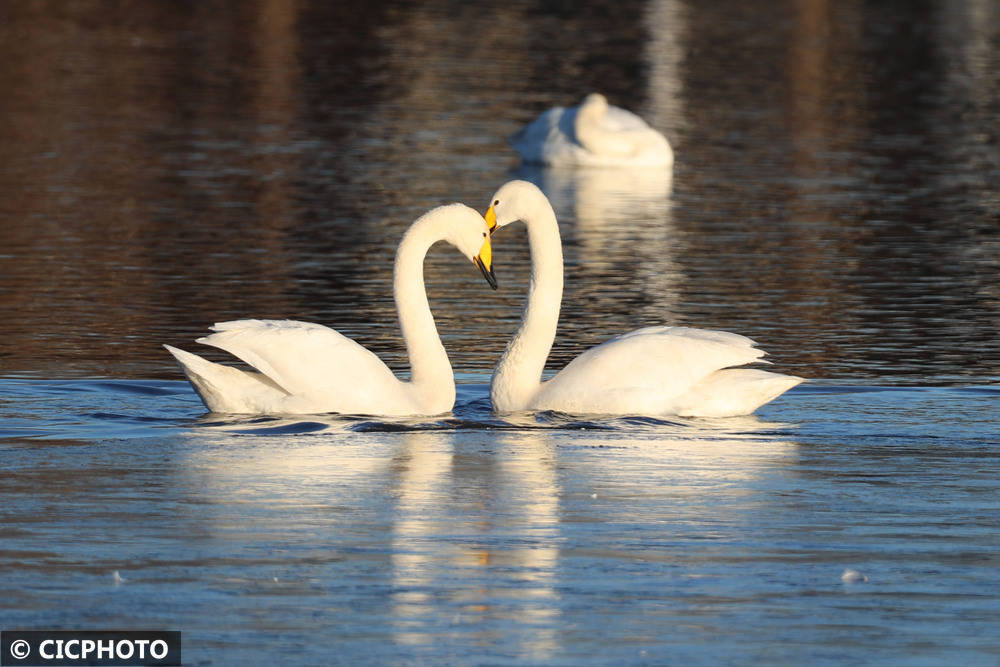 ↑2025年12月11日在辽宁省北票市红村天鹅湾拍摄的天鹅。CICPHOTO/白铁军 摄