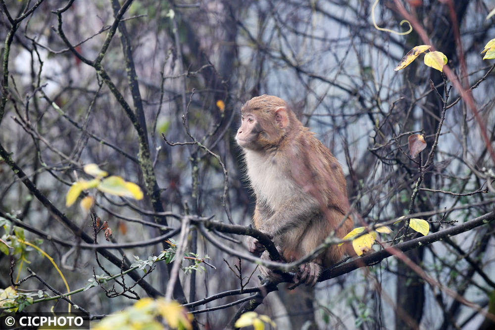 ↑2025年12月18日在河南省沁阳市神农山征象区拍摄的太行猕猴。CICPHOTO/杨帆 摄