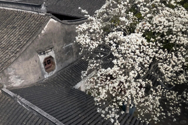 初春的花木,最相宜点缀江南园林。退念念园里,玉兰开得刚巧。推开雕花窗棂,满树莹白的玉兰便撞入眼帘,托着蔚蓝的太空,在青瓦白墙的烘托下,好意思得像一幅流动的水墨画,清丽脱俗。