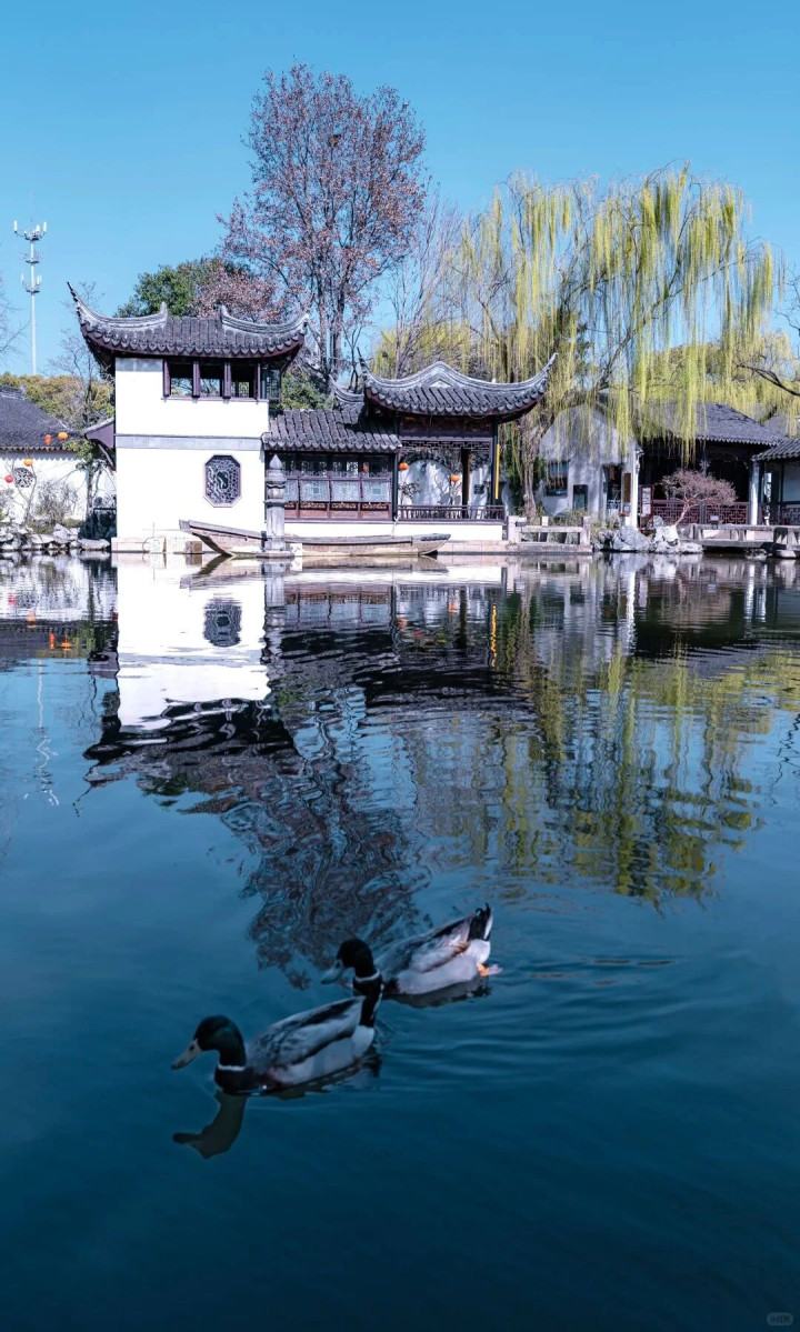 园子不大,却处处小巧。贴水而建,亭台楼阁反照水中,站在“旱船”前看我方的影子,有一种不知身在那儿的隐约。园里的老东谈主在树下晒太阳,眯着眼打盹;孩子在假山间捉迷藏,笑声顺耳。那种稳重,是住在园子里的东谈主才有的,冷静又隆重。