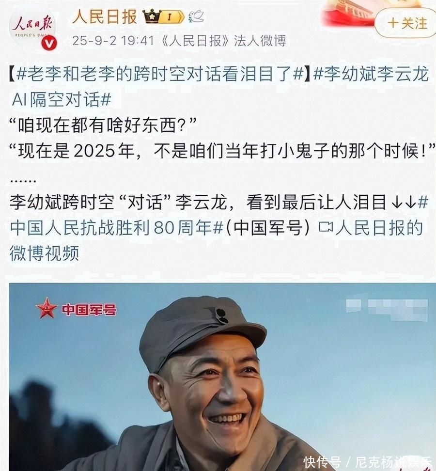 二十年往时了,情况似乎没什么改革,又好像什么王人变了。2005年的《亮剑》成了一个坐标,李幼斌最近在一个AI短片里,和二十年前的我方对话。阿谁短片叫《江山回响》,在B站放了半小时,弹幕就盖了四万五千层。其后《东说念主民日报》转了这个视频。