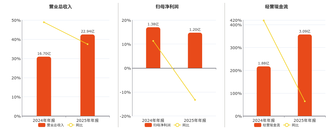公司买卖总收入为22.94亿元。归母净利润为1.20亿元,较昨年同论述期归母净利润减少1831.56万元,同比拟昨年同时下落13.28%。相干活动现款净流入为3.09亿元。